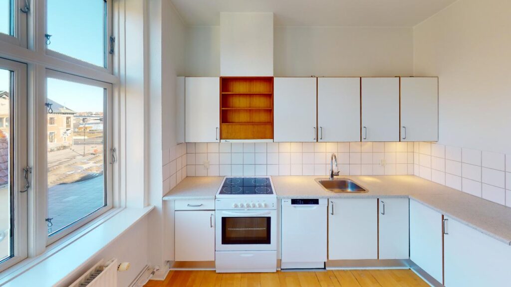 Lys lejlighed med to værelser i hjertet af Aalborg Vesterbro 63, 2. tv., 9000 Aalborg Lejlighed | 2 vær. | 101 m² | 5.995 kr./md 1. november 2025 Indflytningsklar